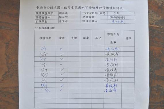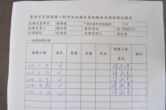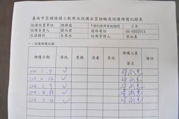 說明:定期進行飲水機設備維護紀錄。 |