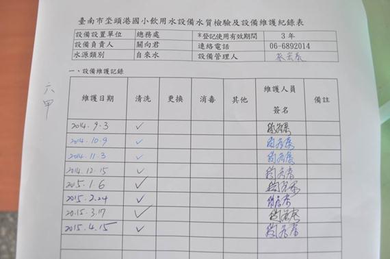 臺南市鹽水區坔頭港國小飲用水設備管理成果